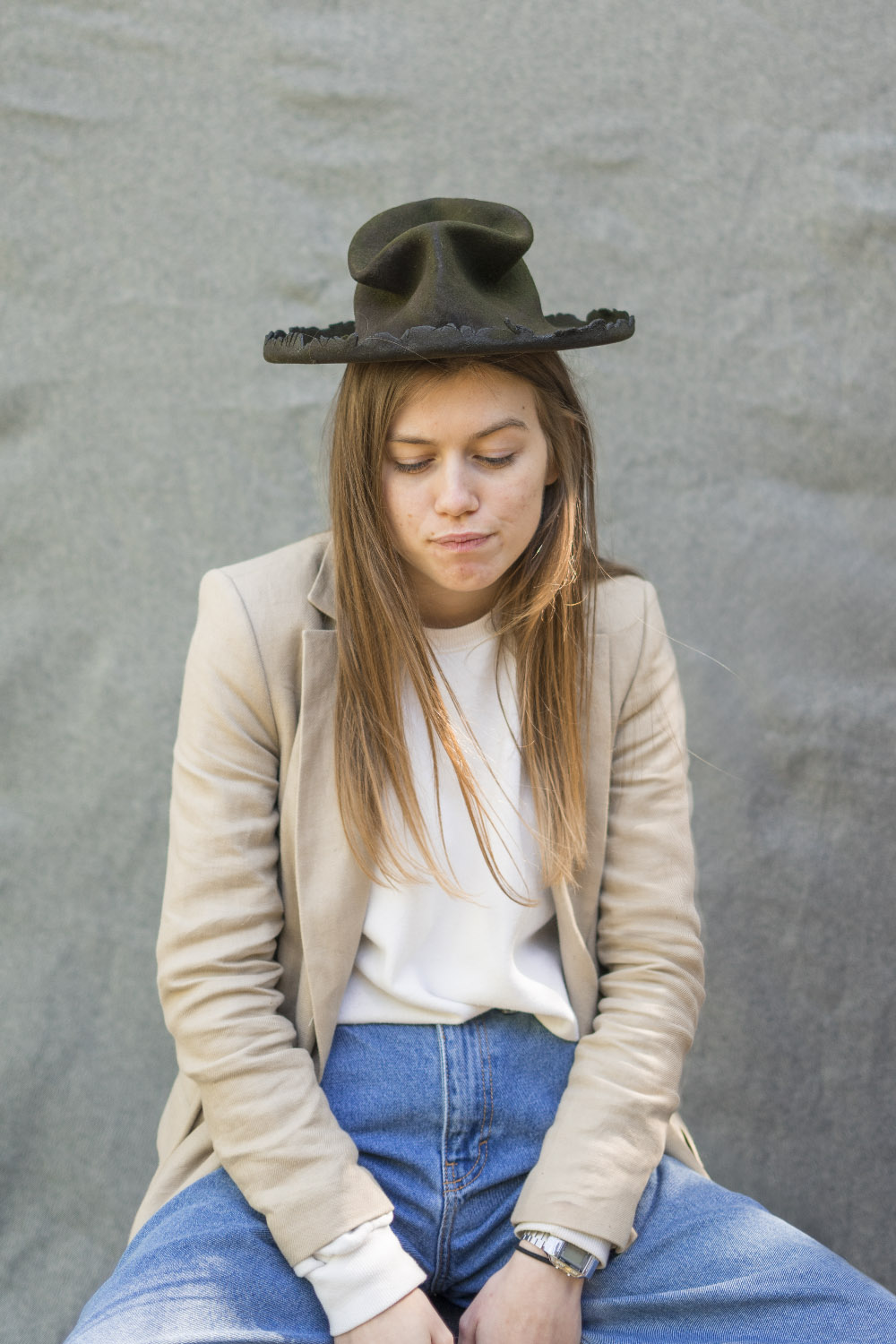 Handmade hat, made of wool felt and treated with fire.